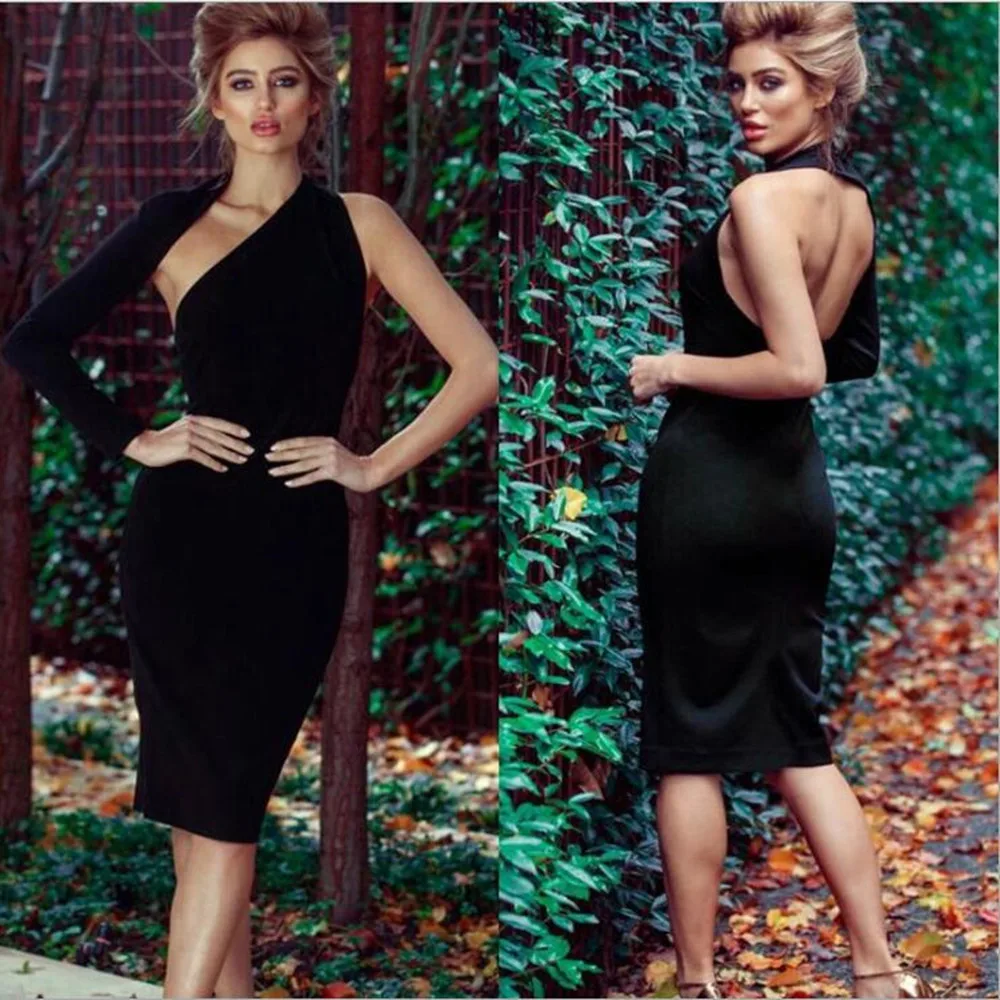 spring and summer women's clothing sexy Slim Skinny single shoulder backless Package hips Dresses A